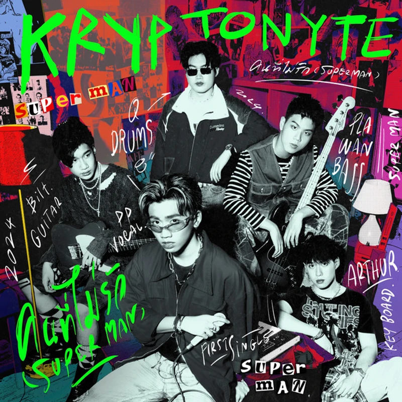 คริปโตไนท์ (คริปโตไนท์) การรวมตัวกันของกลุ่มเพื่อนที่มีความสามารถทางด้านดนตรี ประกอบด้วยสมาชิก 5 คน นำโดย • พีพี อนพัช บรรเจิดศิลป์ (ร้องนำ) • บิว ณัฏฐ์ธเนศ หู้เต็ม (กีต้าร์) • ปลาวาฬ ปลายฟ้า กิตติอัมพานนท์ (เบส) • อาเธอร์ วริทธิ์ พฤทธิปถัมภ์ (คีย์บอร์ด) • คิว ธนกาญจน์ กุลชล (กลอง) ที่มีคาแรกเตอร์แตกต่างกัน แต่เมื่ออยู่รวมกันก็สามารถเติมเต็มกันและกันได้อย่างลงตัว ผ่านการประกวดมาแล้วนับไม่ถ้วน ทั้งการร้อง การเอนเตอร์เทน และ พร้อมที่จะแสดงให้เห็นผ่านซิงเกิลแรกกับแนวดนตรี Modern Synth Pop KRYPTONYTE มาจากแร่ที่สามารถเอาชนะผู้ทรงพลังได้ พวกเราเปรียบตัวเองเป็นเหมือนแร่เล็กๆ ความฝันของพวกเราก็เปรียบเสมือนผู้ทรงพลัง ไม่ว่าฝันนั้นจะทรงพลังแค่ไหนหรืออุปสรรคจะมากมายเพียงใด เราจะผ่านมันไปได้ด้วย พลังและความตั้งใจของพวกเรา